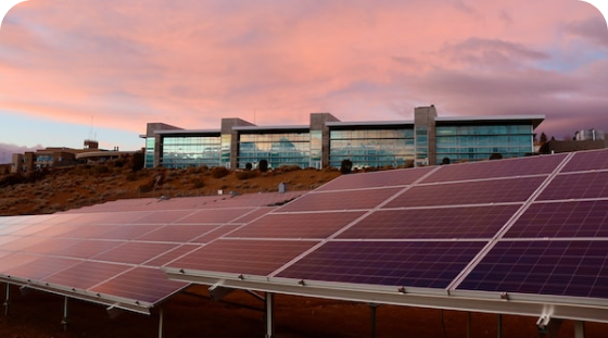 Factory, supplied by solar panels for energy generation in order to be relevant global CO2 zero emission policy